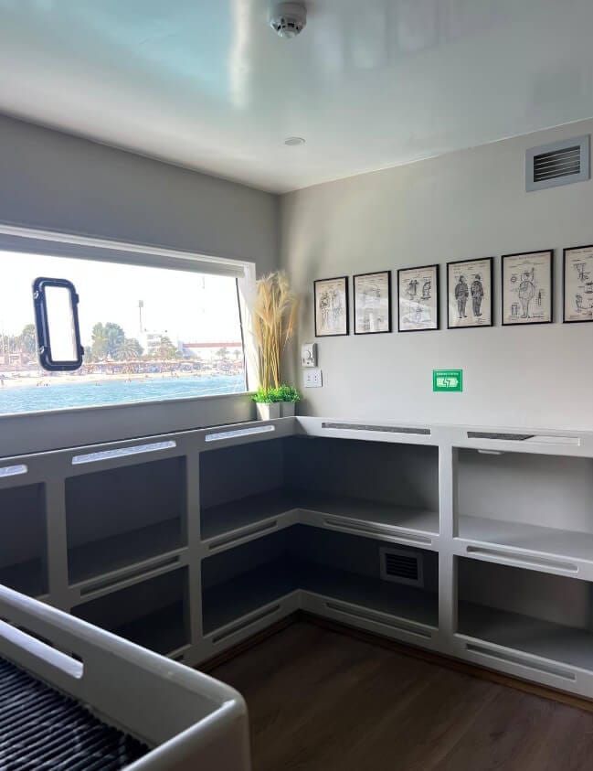 - Przestrzen dla nurków technicznych – stoły i szafki na rebreathery