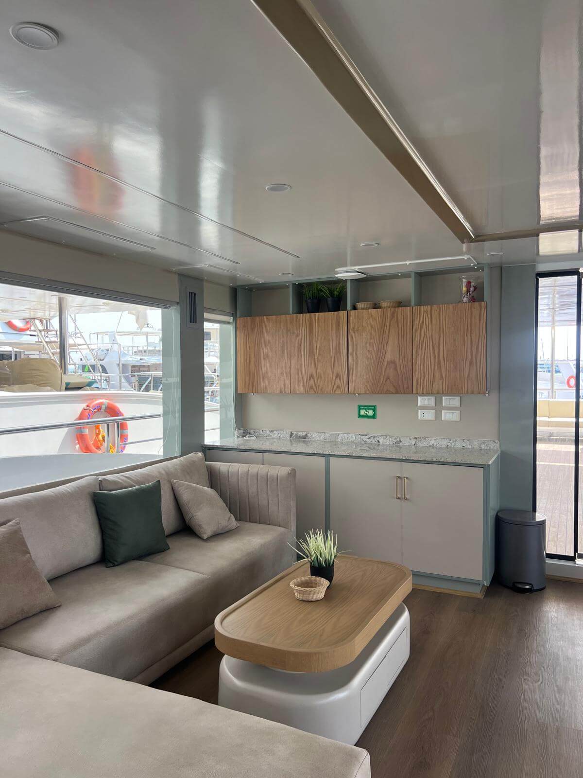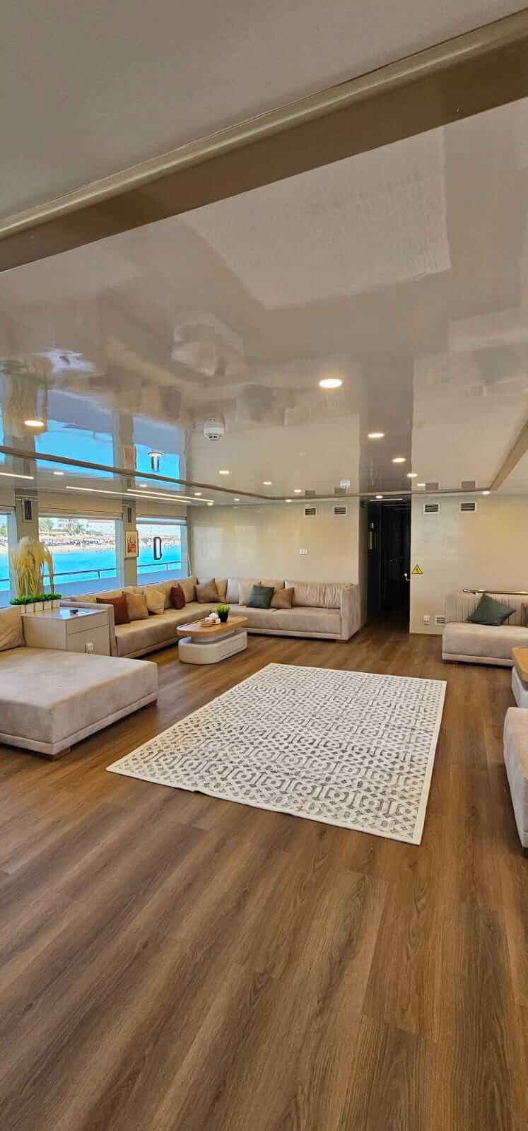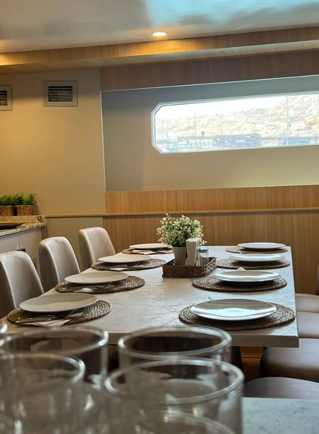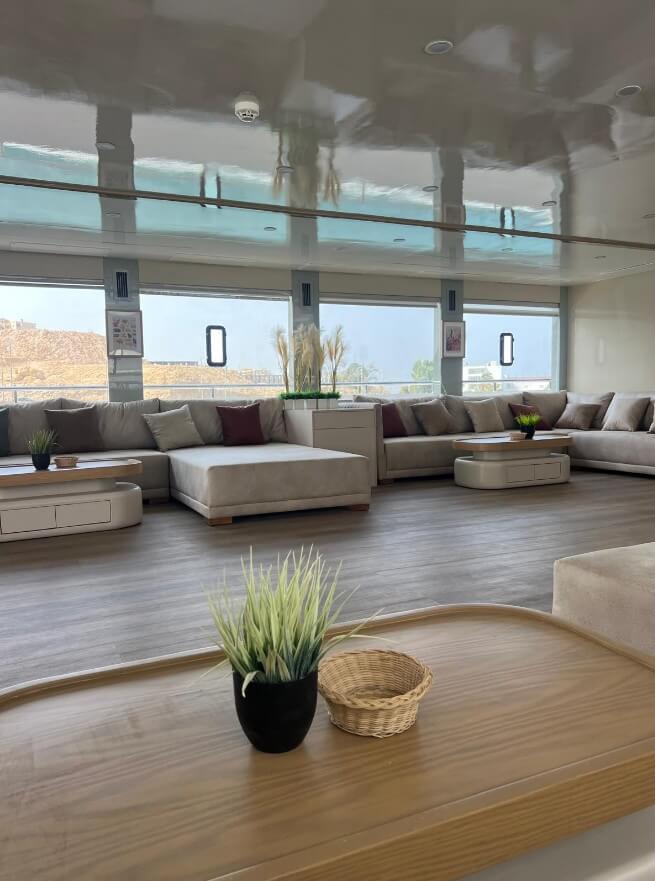 - 7 kabin na pokładzie głównym (maindeck) w najbardziej stabilnej części łodzi, również z dużymi oknami